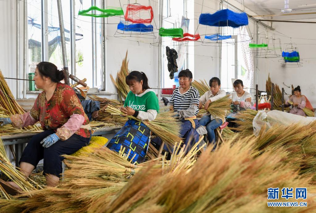 妇女在内蒙古巴林左旗林东镇扶贫车间内制作笤帚(2019年8月5日摄)。新华社记者 彭源 摄