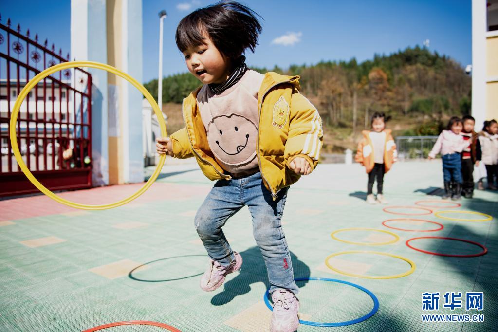 云南省镇雄县以古镇岩洞脚村幼儿园的孩子在操场上玩耍(2020年11月11日摄)。新华社记者 王冠森 摄