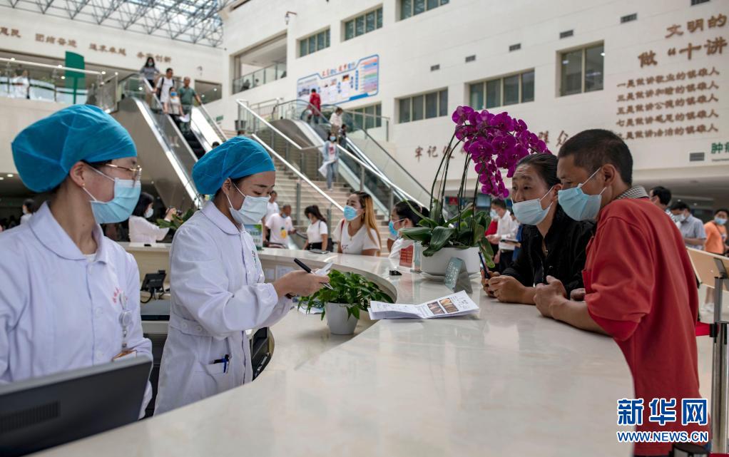 病人在云南省镇雄县人民医院就医(2020年8月11日摄)。镇雄县人民医院与四川大学华西医院联合办医,是云南县级少有的三级综合医院。新华社记者 江文耀 摄